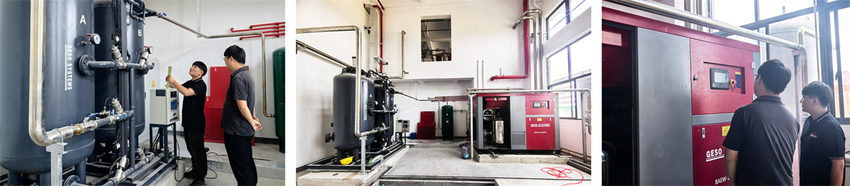 В днешната ера на експлозивния растеж на технологията за изкуствен интелект, AI роботите ускоряват навлизането си в ключови области като здравеопазване, производство и Интернет на нещата (IoT). Тъй като основната инфраструктура, поддържаща прецизното производство, стабилна и ефективна система за подаване на въздух директно определя надеждността на интелигентното оборудване и скоростта на добив на продукта. Водещо вътрешно предприятие в областта на AI Robotics постави изключително високи изисквания за чистотата, стабилността и интелигентното управление на компресираните въздушни системи в изследването и производството на микромедицински роботи и интелигентни IoT устройства. Relying on its deep expertise in the compressed air field, the GESO technical team has tailor-made a golden combination solution for the enterprise, consisting of the oil-free water-lubricated air compressor BAEW-110APM, the adsorption nitrogen generator GNS180-99.99, and a precision post-processing system, empowering intelligent manufacturing with innovative technology.